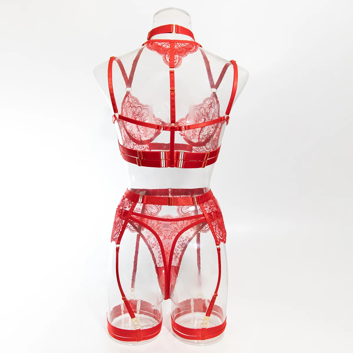 Designed to captivate from every angle, this irresistible set features delicate floral embroidery, daring strap details, and an even bolder back design — leaving little to the imagination. Perfect for unforgettable nights and confident allure.
